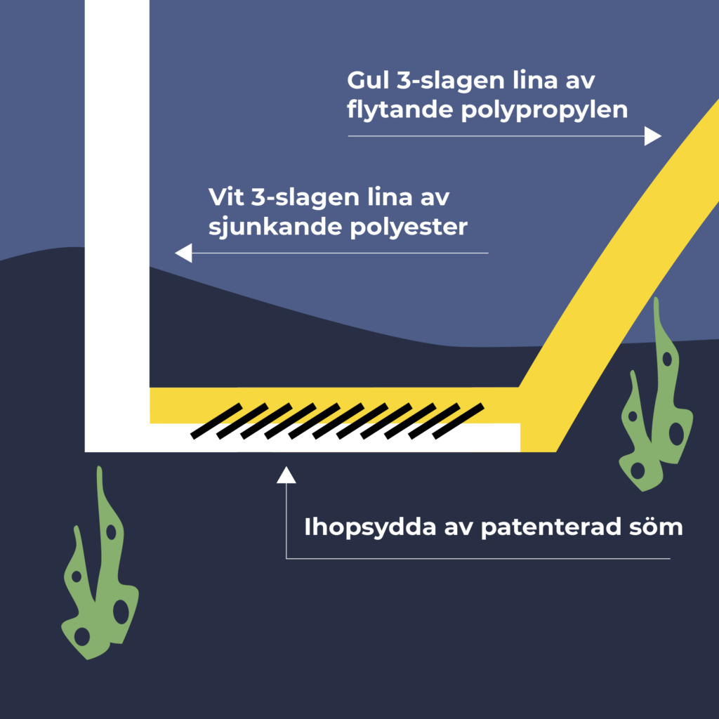 O-Boj använder ingen tungmetall alls, utan bygger sin funktion på en smart kombination av två linor: en som flyter och en som sjunker. Den flytande delen av bojlinan är specialtillverkad av Polystar som är både slitstarkt och pålitligt. Den andra delen tillverkas av polyester, som sjunker i vatten. Tillsammans skapar de samma stabilitet som många tror att bara bly kan ge, men utan att lämna giftiga spår i sedimentet.