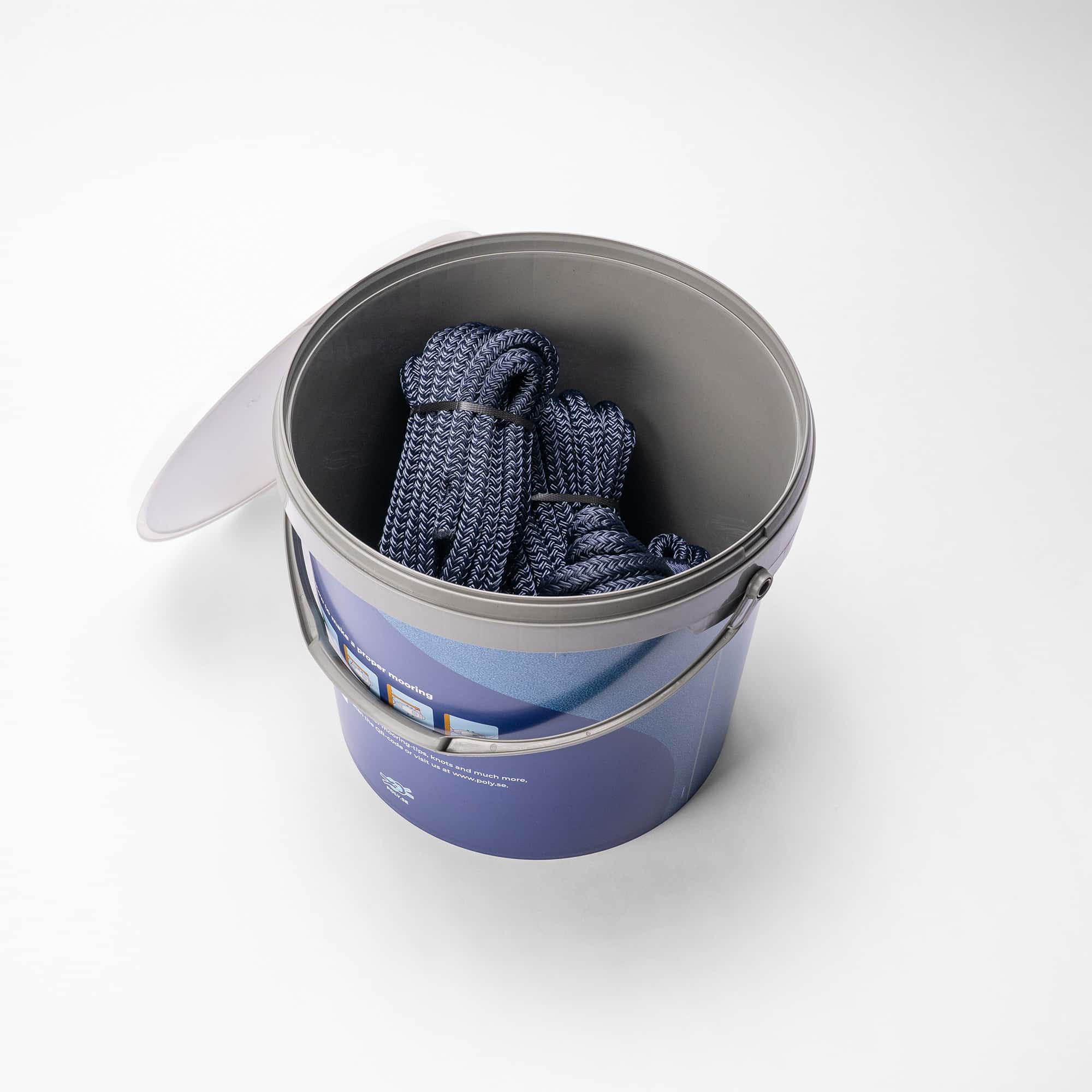 Förtöjningslinorna levereras i en praktisk spann som är mycket användbar ombord på båten. Denna spann har en QR-kod som du kan scanna för hitta vår tips & trix sida. På denna sidan hittar du allt från knopar och guider till intressanta artiklar om båtlivet.
