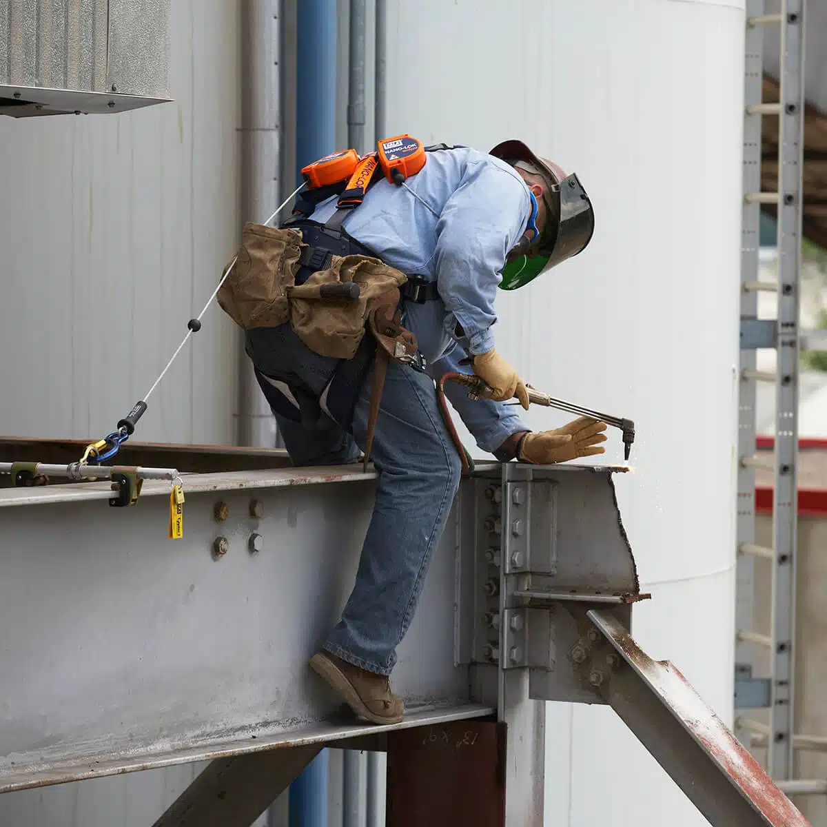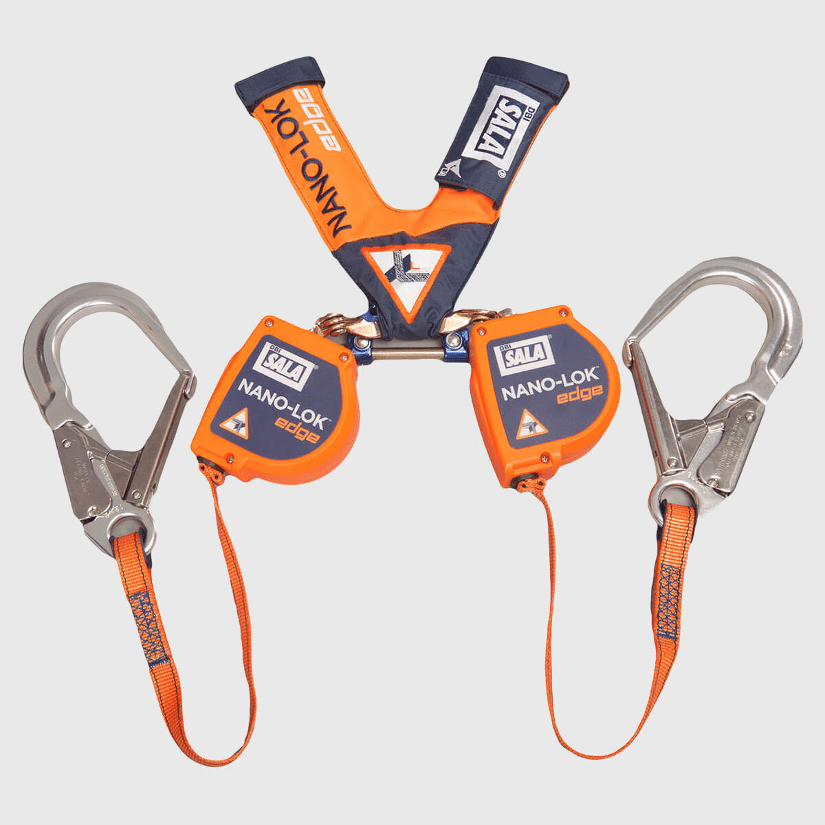 Fallblock från DBI-SALA™ av högsta möjliga kvalitet : dubbla ben med 2,5 meter band, skydd mot skarpa kanter och ställningskrok
