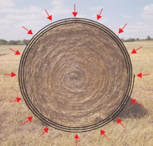 The most important and perhaps most economical advice we can give you is to wrap the bale with at least 3 turns of round bale net. This keeps the bale compact, thus reducing the amount of oxygen and harmful yeasts inside the bale. It is also more affordable to wrap an extra layer of net around the bale to prevent it from expanding in size and requiring more bale wrap.