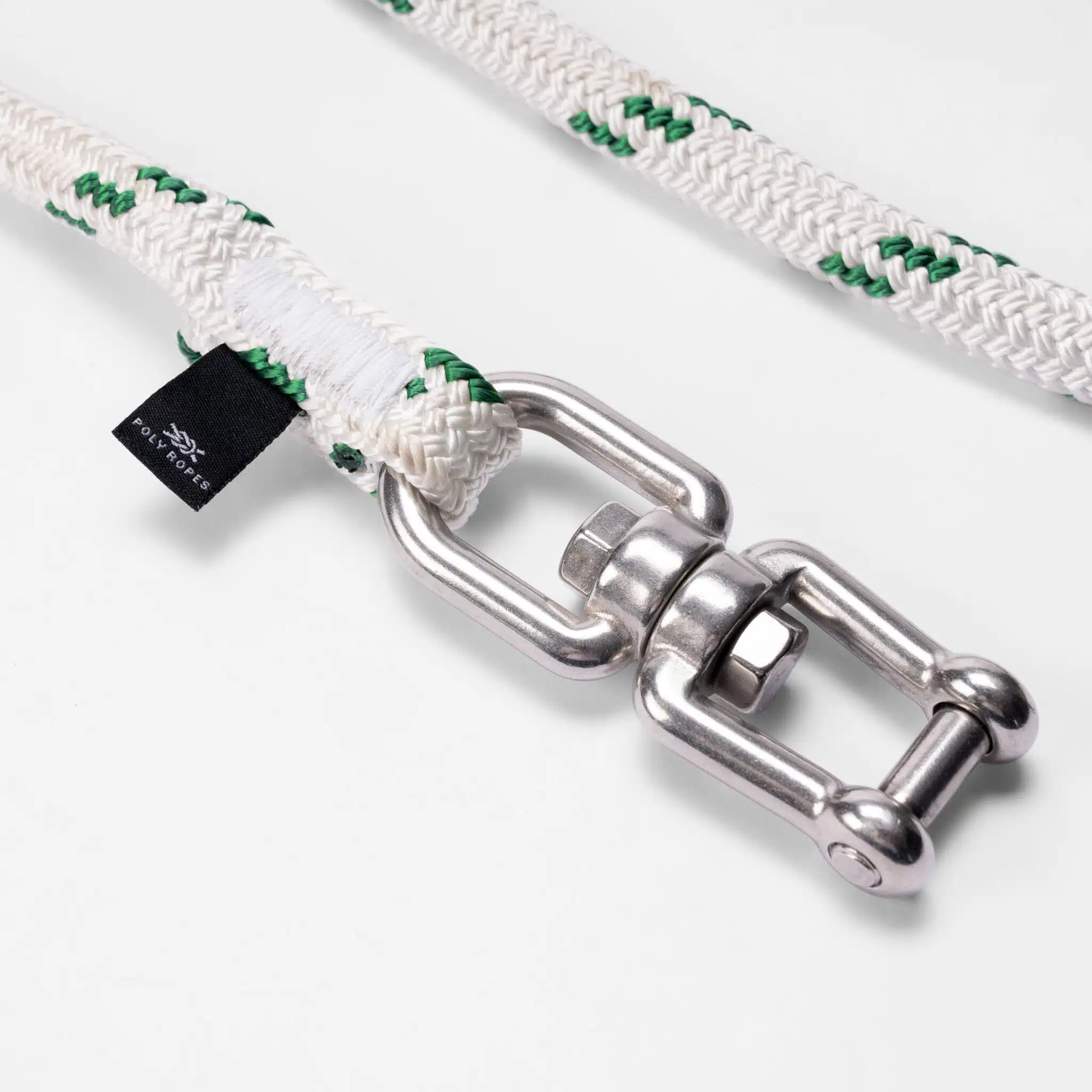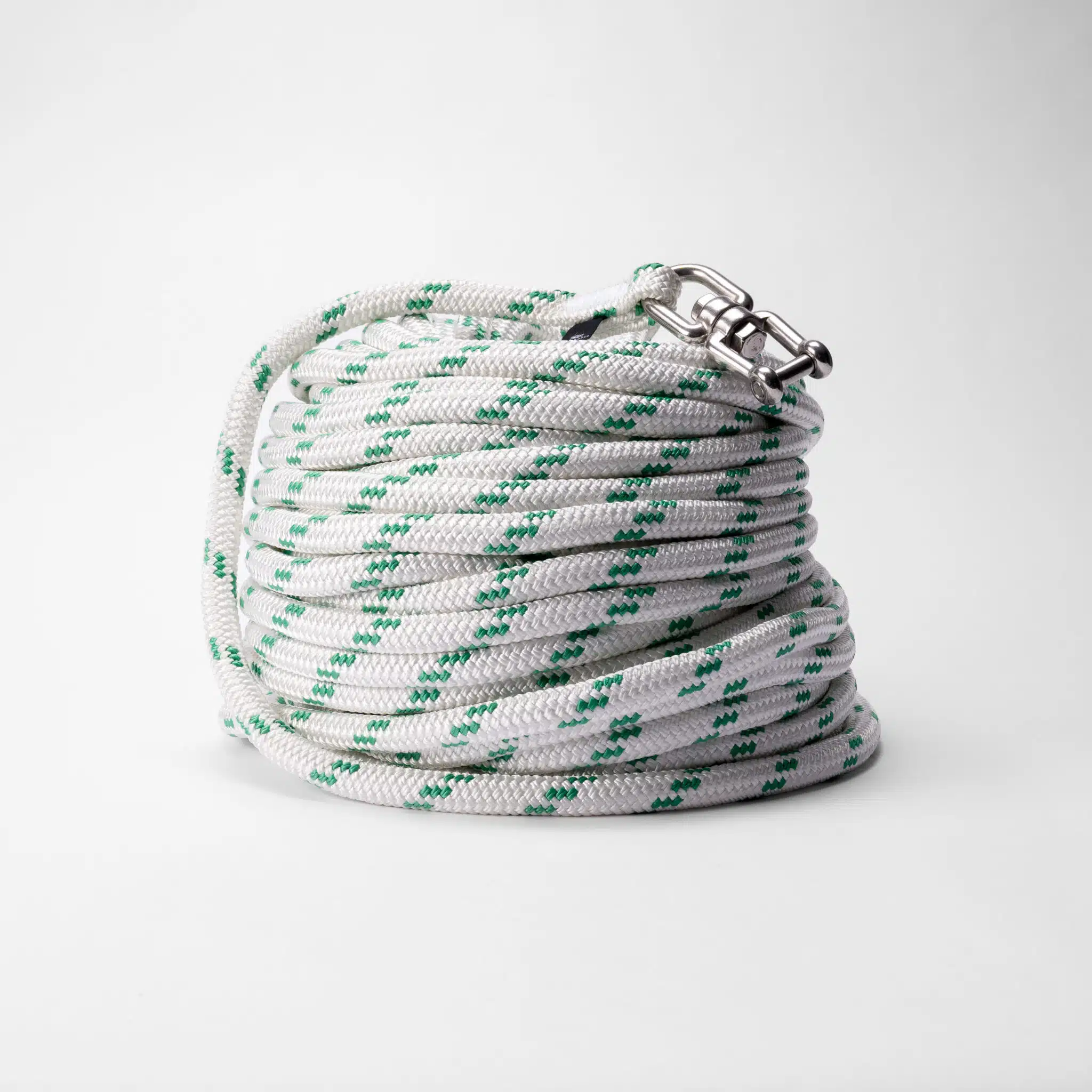 Anstelle einer Kausch und eines Schäkels am Ende des Seils haben wir stattdessen einen Wirbel gewählt. Mit einem Wirbel vermeiden Sie, dass sich die Ankerleine verdreht, wenn Sie ankern. Der Wirbel ermöglicht es dem Anker oder der Drift, sich zu drehen, während das Ankerseil ruhig bleibt.