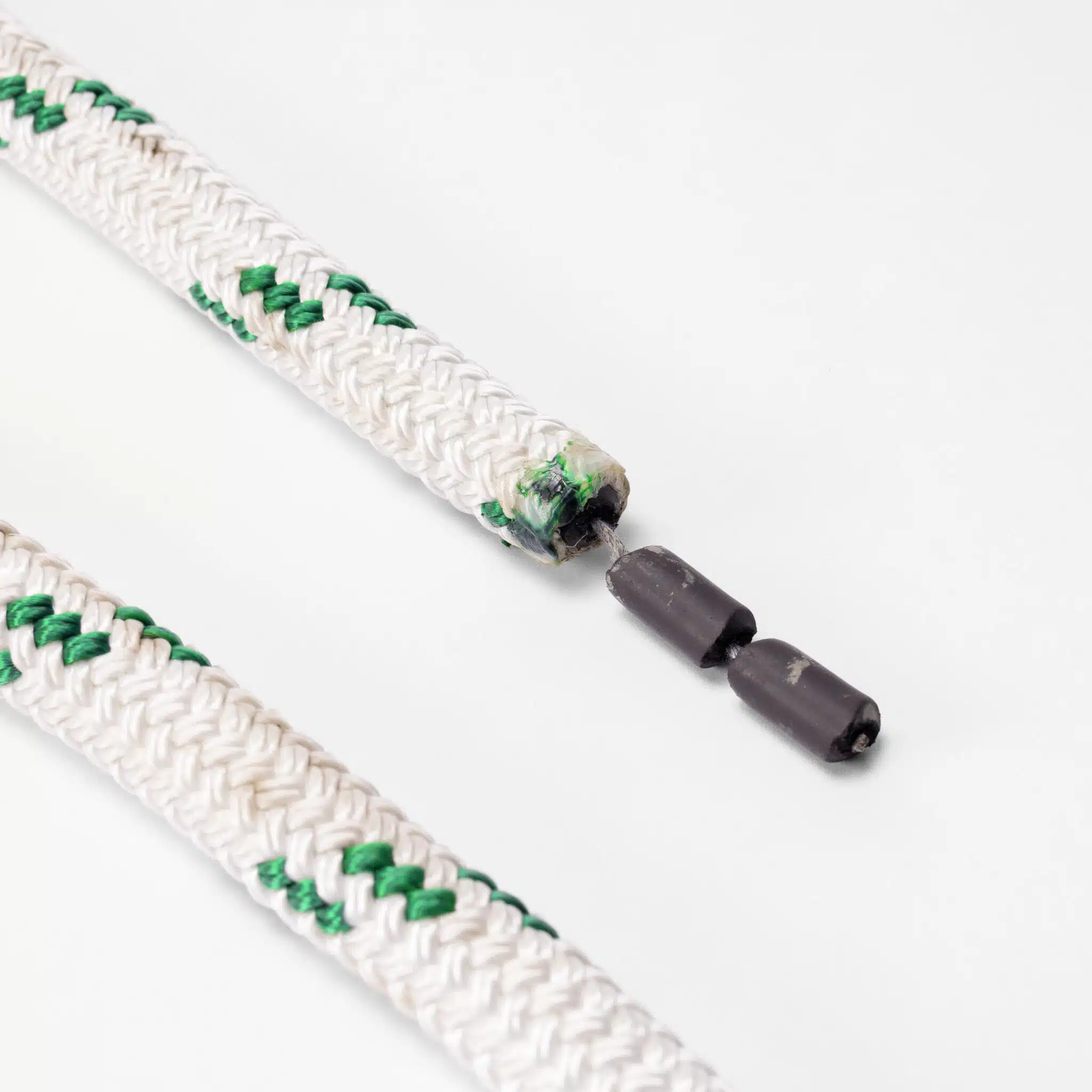 Anstatt das Seil mit bleibehafteten Gewichten zu füllen, haben wir es mit Sand, Eisenerz und Gummi gefüllt, das alles zusammenbindet. Dann schmelzen wir dies zu einer Gummimischung zusammen. Dank dessen erhalten Sie eine Ankerleine, die genauso schwer ist wie eine klassische bleibehaftete, aber die Umwelt nicht negativ beeinflusst.