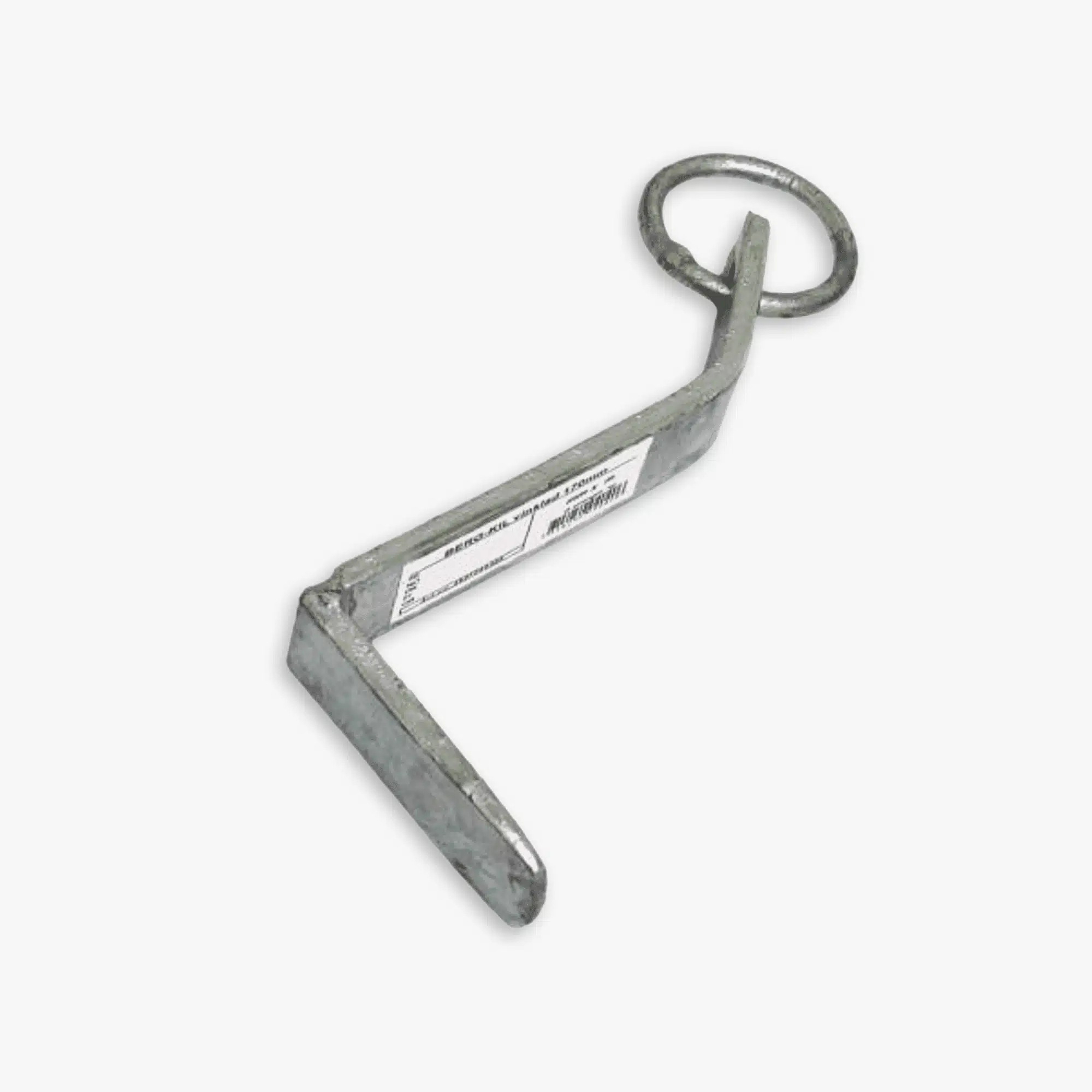 The angled mountain wedge from PolyRopes is hot-dip galvanized and equipped with a metal ring at the end for attaching the mooring line. With a length of 170 mm, the mountain wedge is used for mooring boats in natural harbors, where it is driven into a suitable crevice or crack in the rock or stone surface This ensures secure and stable mooring, even in rugged coastal environments.