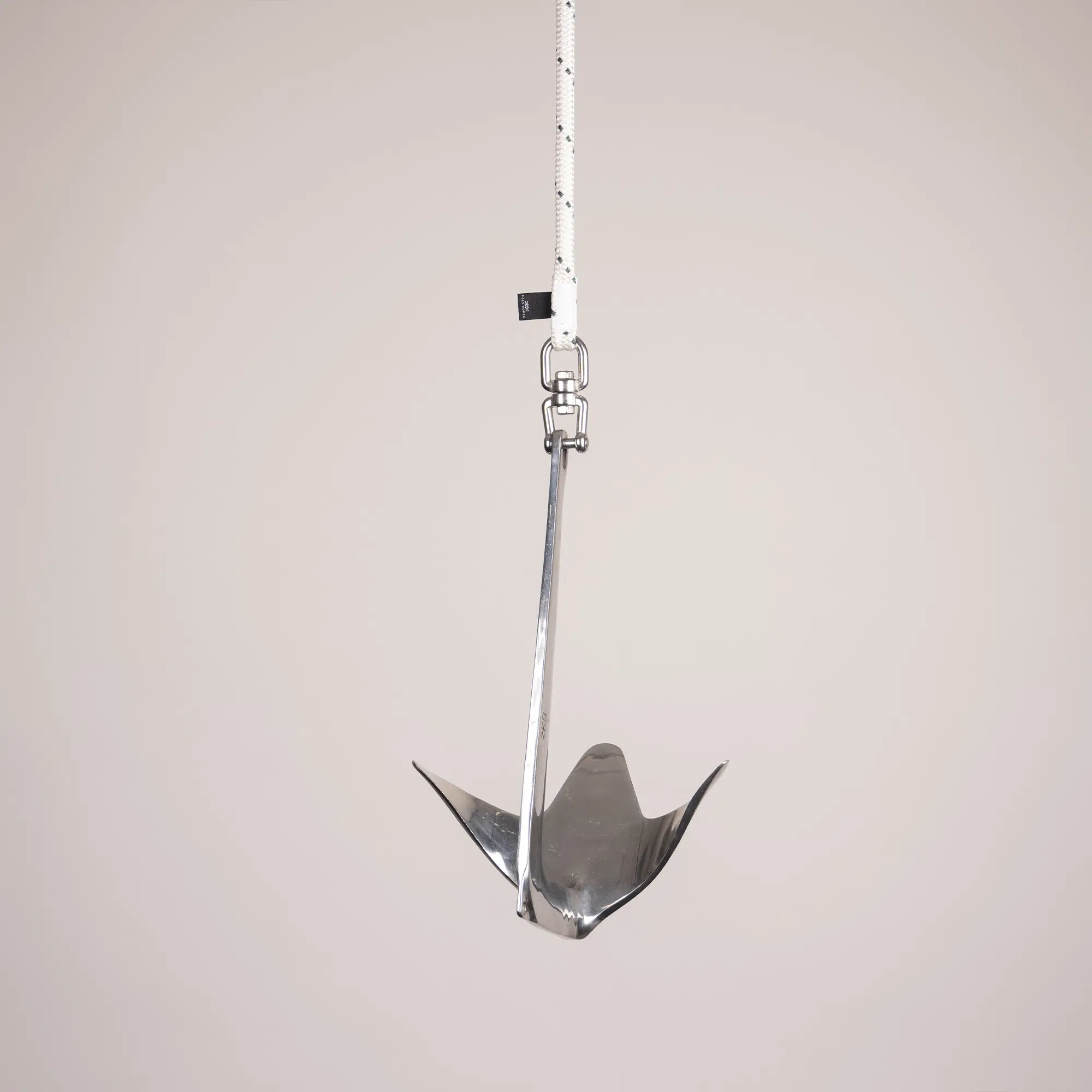 Instead of using a thimble and shackle at one end of the rope, we have chosen a swivel instead. A swivel prevents the anchor line from twisting when you anchor off. The swivel allows the anchor or drag to rotate while the anchor rope remains stationary.