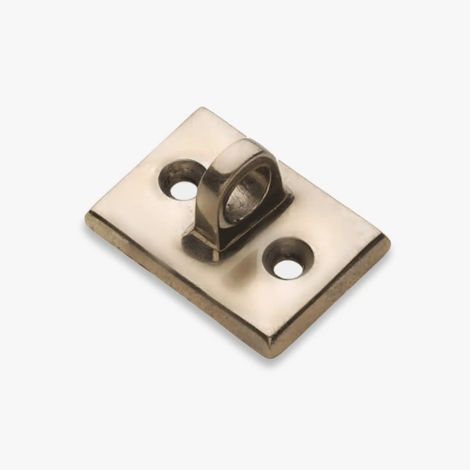 Brass wall bracket, eye plate, for use with, for example, stair railings, decorative ropes, bannister ropes and barrier ropes of any size. The wall bracket can be used with open hook, pistol hook or clip hook end fittings.